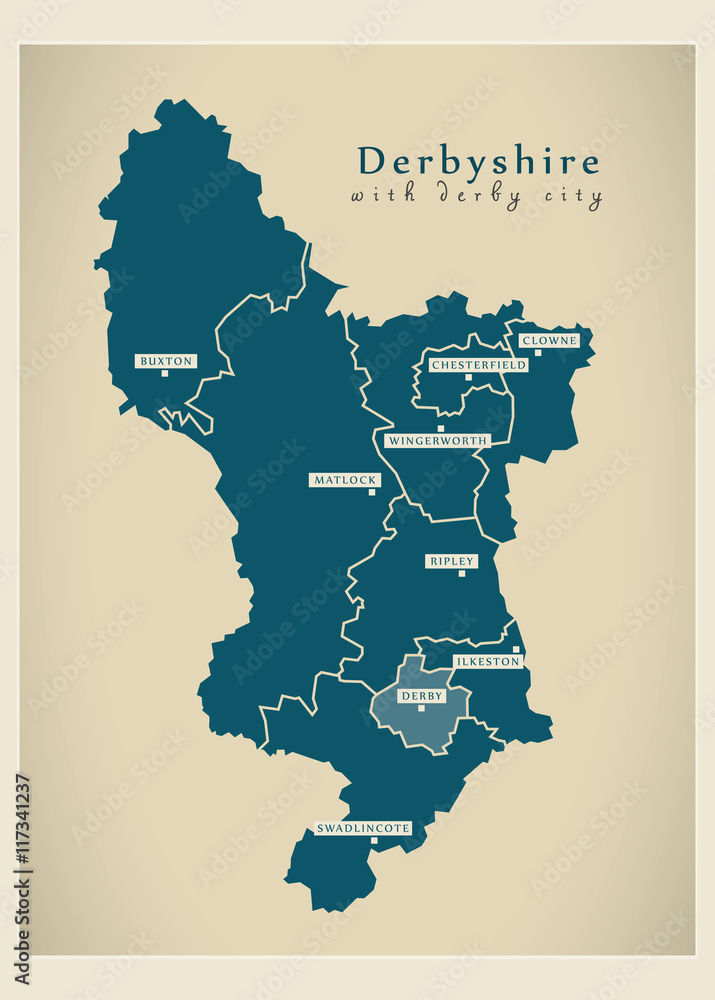 Modern Map Derbyshire with Derby City and districts UK Stock